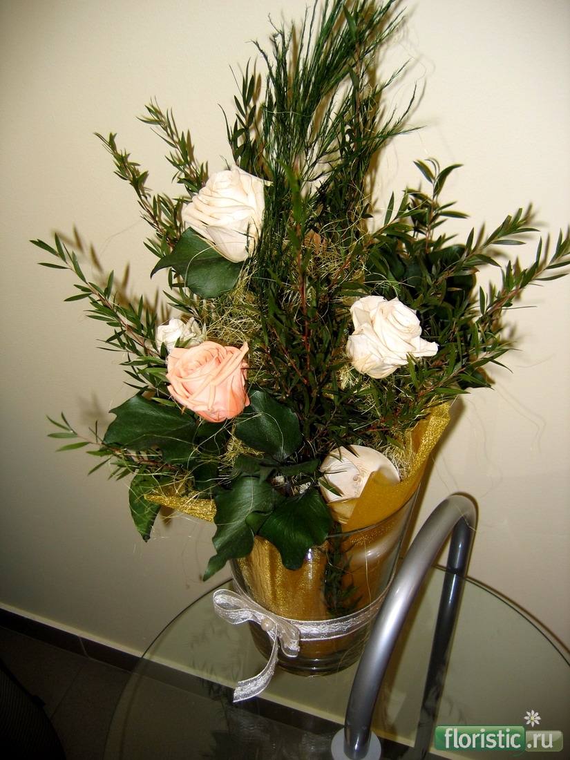 Это композиции для стоматологической клиники VIP-класса. Ввиду того, что кризис у нас ощущаетса и до состоятельных клиентов добрался - то поступило от меня предложение на время кризиса, вместо орхидей и срезки использовать для декора помещений долговечный и эксклюзивный материал. Таким элитным материалом и оказалис стабилизированные цветы... которые теоретически готовы продержаться года три. А этого вполне достаточно. Относительно пустовато: был куплен материал на определенную и совсем скромную сумму, посему пришлось растягивать материал и экономить по-максимуму. А в принципе приятно работать с этим материалом, однако ввиду удешевления самих работ целесообразнее использовать для забивки не стабилизированную зелень, а что-то еще. Мне правда в этот раз не удалось использовать искусственные цветы и зелень, но думаю будет совсем не плохо. Если, конечно, исскуственные цветы будут экстра-класса, а то сразу появится шанс понизить класс самих работ... Помимо этих композиций на окно рецепции был приготовлен витраж http://www.floristic.ru/forum/showth...?t=1080&page=3 |