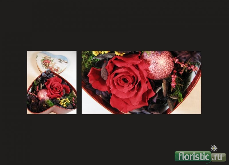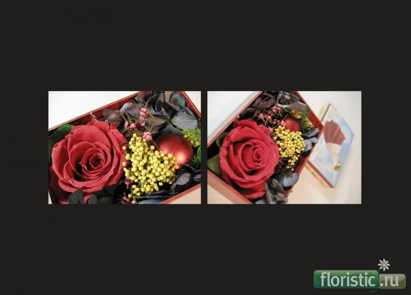 Мои новогодние подарки из стабилизированныйх цветов (аранжировка в подарочной коробке)