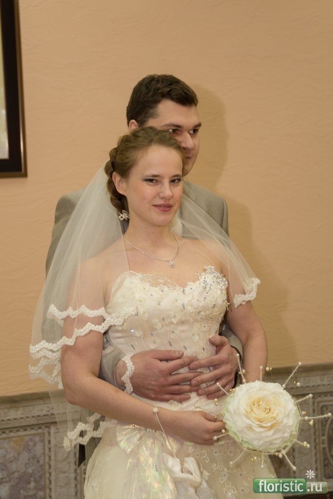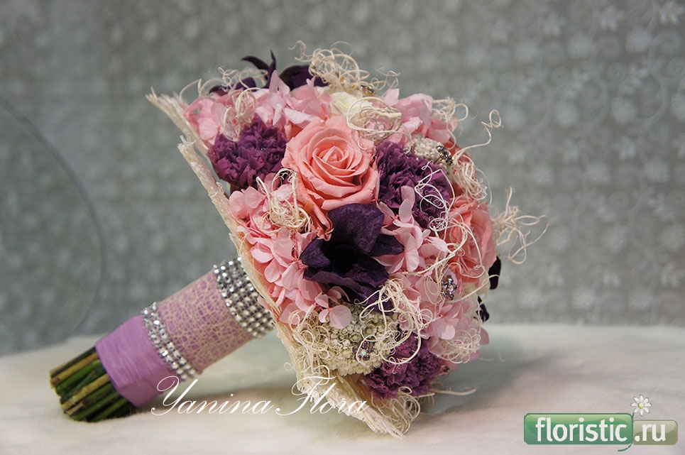 Розамелия из стабилизированных с меховым оформлением..... А бусины как всегда просьба невесты((((( без них она смотрелась просто класс)