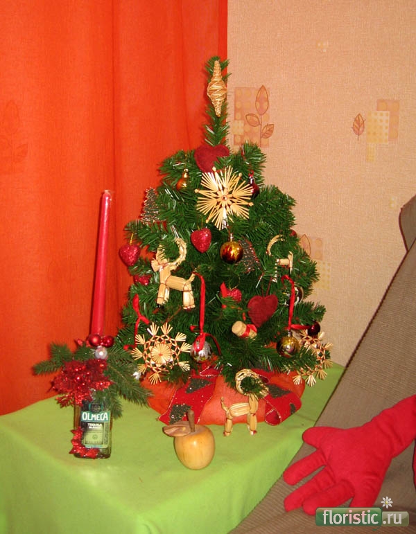 Соломенные игрушки это интересно, елочка супер, расскажи чем ты базу декорировала плиз..=) :confused: ... а чья это лапа к текиле тянется?.=)) :D