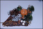 Сегодня делала композицию на Старый Новый год. Бюджет композиции маленький и декоративных элементов мало , но хотелось бы узнать , получилось ли у меня создать празднечное настроение из того что было использовано? очень важно мнение опытных людей...