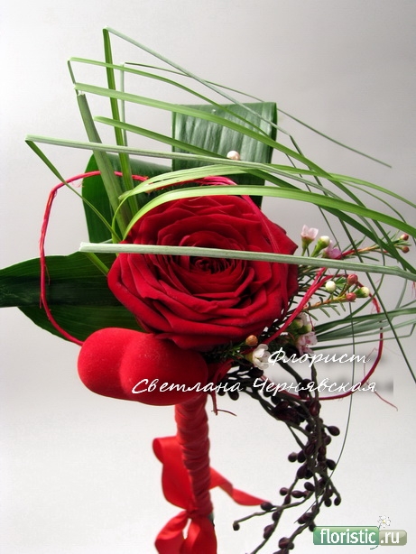 Я делала не на 14-е февраля, а где-то в мае этот букет. Но по тематике и стилистике он пойдет!