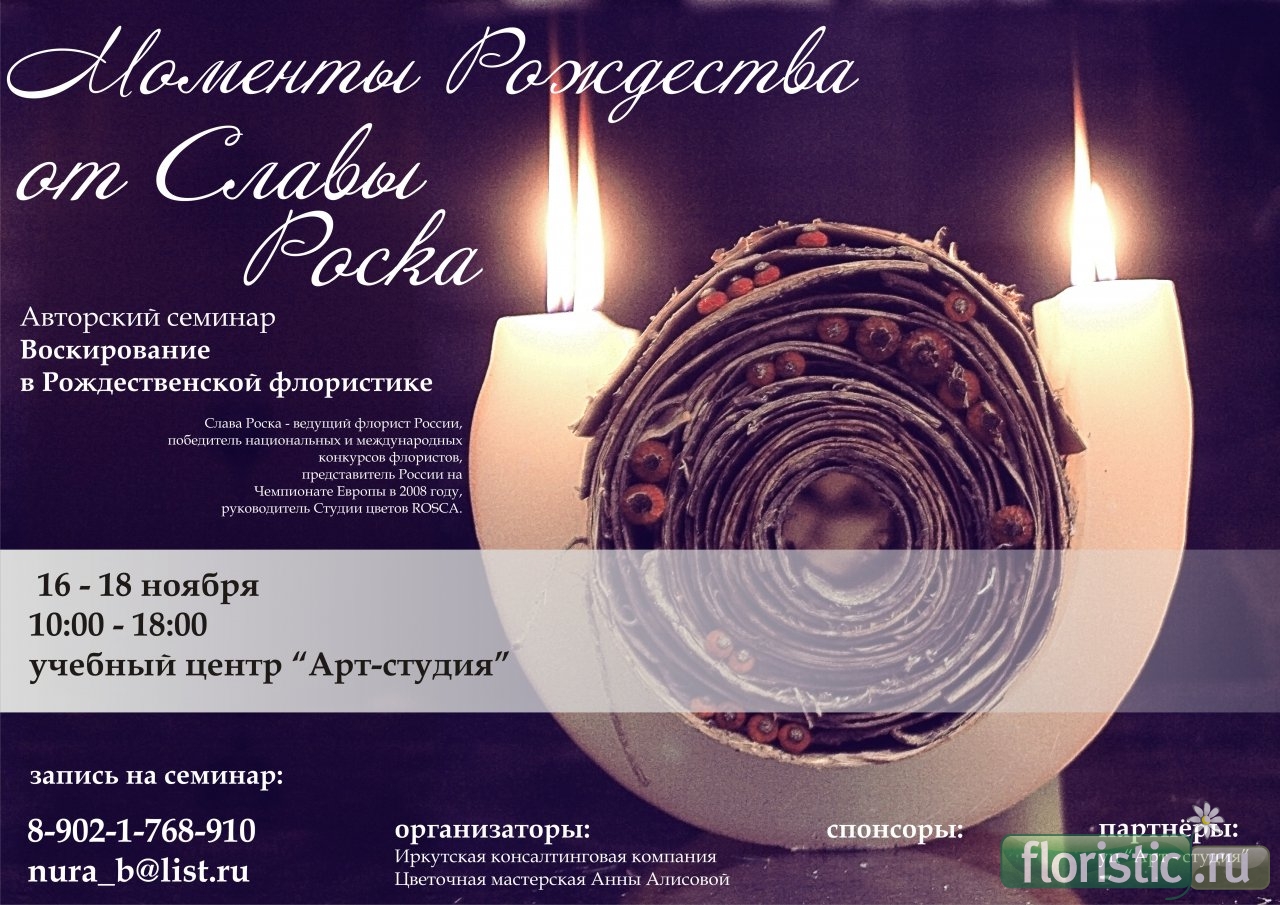 Рождественские мечты от Славы Роска Воскирование в Рождественской флористике г. Иркутск Для участников из других городов действует скидка 15% Подробная информация http://vk.com/rosca_irkutsk |