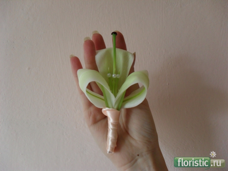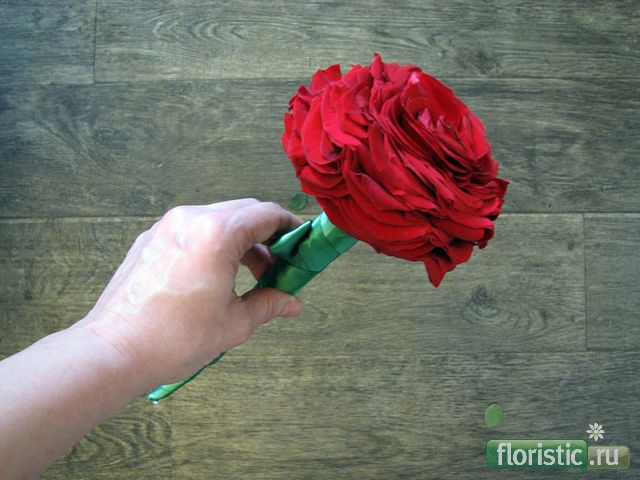 Гламелия должна плотно лежать в руке, поэтому очень важно придать ей правильную, немного вогнутую внутри форму. Для этой цели нередко используют лёгкие проволочные, собранные из прутиков каркасы, в которые устанавливается собранный «цветок». Изготовление гламелии требует времени, но произведённый эффект стоит того. Букет гламелия появился более ста лет назад в Великобритании. Первоначально форма гламелии составлялась из лепестков гладиолуса и камелии, отсюда и название. На проволку, как и много лет назад насаживается каждый лепесток , а затем они собираются вместе. Сегодня гламелия с изяществом играет роль букета невесты. Благодаря технике гламелии можно придать букету абсолютно любую форму. Главное, чтоб она соответствовала привычкам невесты, её фигуре, цвету волос, фасону и цвету платья. Однако не стоит забывать, что букетик должен быть маленьким, иначе он будет очень тяжёлым. Для создания одного такого цветка уходит, как правило, 15—20 роз. Букет-гламелия – дорогое удовольствие, это прекрасный вариант для "эксклюзивных" невест. Позволю себе внести поправку - "гламелия" - это цветок,созданный из лепестков гладиолуса в форме камелии - отсюда - Гла - мелия. Создавать аналогичные работы можно из лепестков различных цветов. |