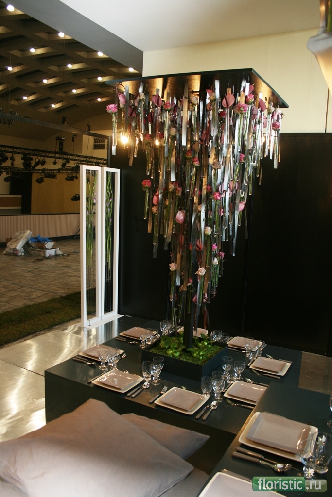 Итак - первое. Металл - серо-белая гамма+ сиреневые цветы и водные растения на самом столе. Было оформлено два стола в таком стиле,оформления верхней части разное,сами столы - одинаковые и еще дополнительные стойки - рамки с гладиолусами и типа барной стойки в стороне в том же стиле. Чем хороши такие варианты - и наши оформители очень любят такое - что сама основа постоянно используется и сколько бы она не стоила - довольно быстро окупается. Цветов минимум - привет Украине! - относительно такого роскошного оформления. Смотрится - отпад,вложения практически одноразовые. обучение - http://svetlana-lunin.com/ группы курсов - в ВК и в ФБ флористический блог - http://svetlana-flowerart.blogspot.co.il |