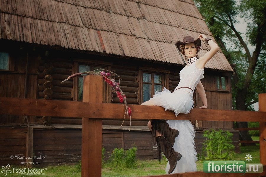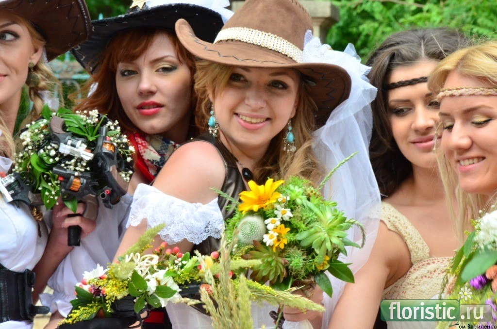 Оксана, я помню, ковбойская невеста и ее букет были очень крутые! И с ней и с вьетнамской я шла в одном ряду, рассмотрела как следует! ))))) Очень понравились. А лесная фея, мне еще на параде подумалось, что-то флорист перестарался, а оказывается невеста решила "добавить".