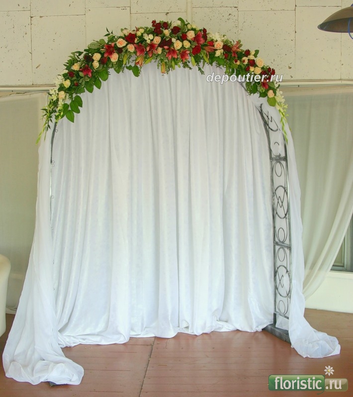 По поводу арки и крепления цветов. Поделюсь только своим способом работы, думаю он у всех приблизительно такой же) Я арку готовлю на месте торжества, т. е. собираю конструкцию, креплю оазис (оазис замачивается и оборачивается в пищевую плёнку заранее), делаю цветы. Если бы у меня был огромный бус, то делала бы арку в мастерский и транспортировала в готовом виде, поправки внесла бы уже на месте, НО....приходится всё делать на месте. Если время ограничено, то верхушку арки можно сделать заранее и перевезти её в таком виде, но я склоняюсь к тому, что лучше приехать пораньше и всё сделать на месте, тогда ничего не сломаете при перевозке, не помнёте и не будет ёкать сердце на каждой кочке во времы дороги)))))) |