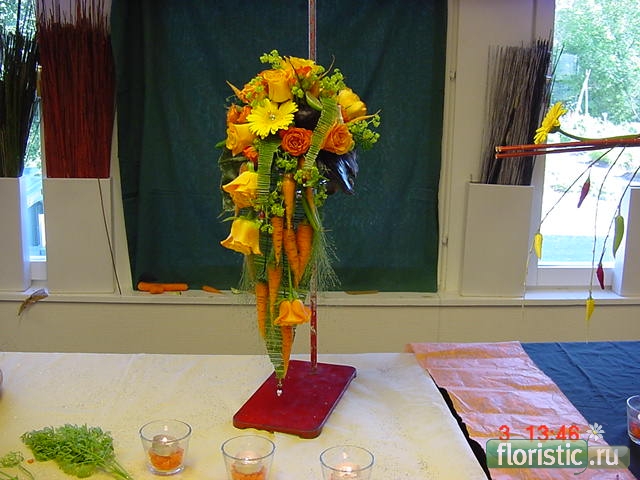 А букеты с фруктами-овощами просто блеск! Особенно понравились морковки,как здорово поданы,правильно подчеркнуты...Замечательно!