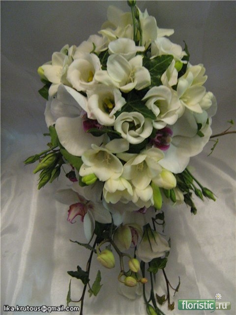 Сегодня делала свадебный букет-фаленопсис, фрезия, эустома. Конечно, это не шедевры-букеты СветланыL...Но почему-то хочется Вам показать ...:confused::p