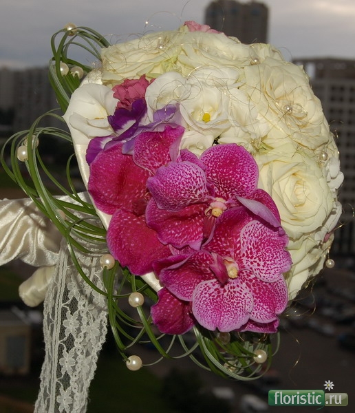 Вчера букетик делала.Невеста хотела круглый,классический,но в то же время необычный.По-моему,у меня получилось