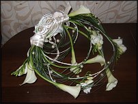 Так как букет из калл был в такой технике, пришлось сделать для него подставку, чтобы он на столе не лежал как венок. В общем прокоментируйте пожалуйста. Фото с машинами выложу в рубрику свадебные машины. |
