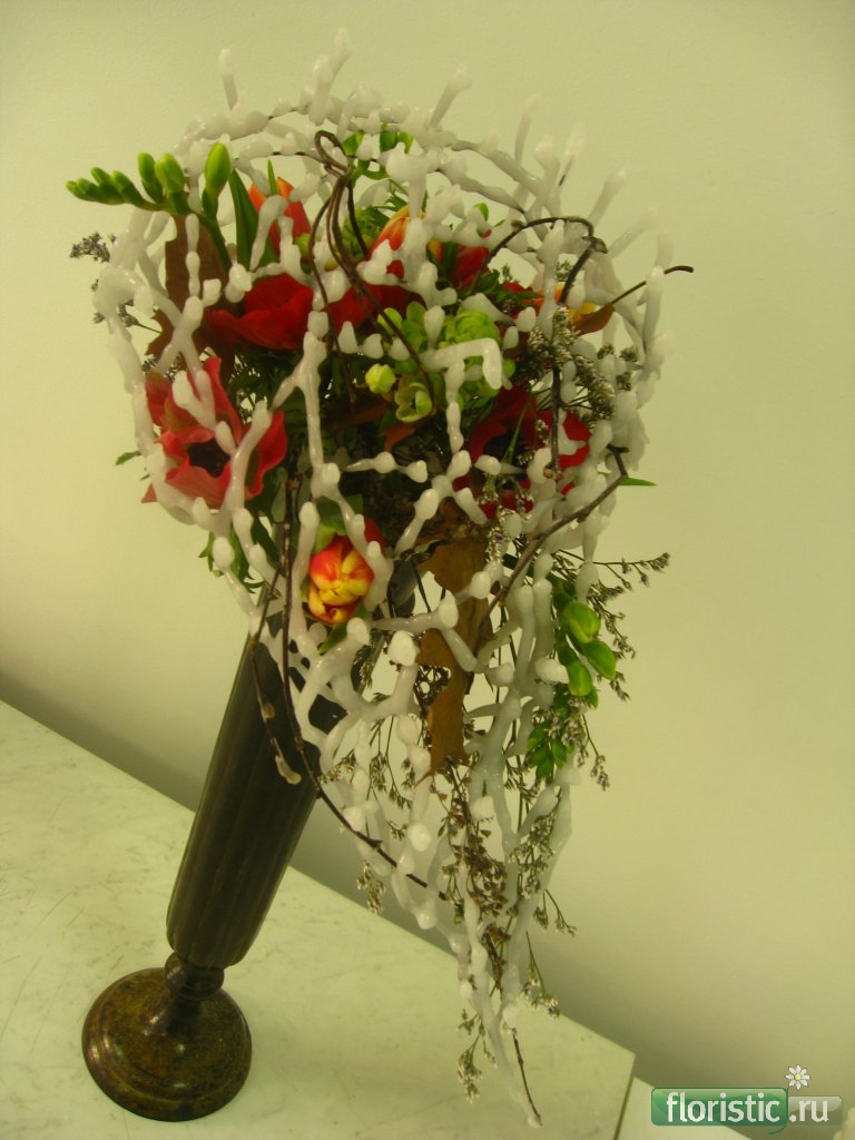 у меня в книжке есть описание букета на каркасе из воска, я правда так и не сделала сама такой)))