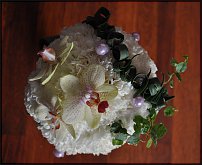 Могу только присоединиться к предыдущему оратору - шедевр, наверно, даже слово не подходит, а сильнее я не знаю. Букет совершенно фантастический! Нежный, элегантный, изысканный, тонкий... Слов нет - одни эмоции. Тая, а нельзя вопрос по технике задать - как и на чем крепились цветы и как держала букет невеста.. И не стали ли раскрываться сережки? Еще ра спасибо за чудо!