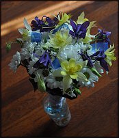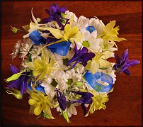 Как сделано - основа из флор.проволочной сетки, сложенной вдвое, между ней проложен небольшой кусок оазиса в верхней части, далее по лицевой стороне примотаны серёжки, ландыш - в оазис, тыльная сторона проклеена листьями камыша в несколько слоёв. Ручкой является таже сетка, согнутая и усиленная толстой декоративной проволокой, декорирована тиландсией. Невеста букет не держала, только я , так как сделала его в качестве эксперимента, вдохновлённая серёжками. Прошло 2 дня, большая часть ландышей ещё свежая, серёжки начали подсыхать, некоторые полопались, пух не пушится )), а вот то что они становятся похожи тоже на ландыши - меня радует. И ещё уменьшился вес букета. Т.е., если делать с подсохнувшими серёжками, то будет ещё интереснее..... Добавлено через 2 минуты Bolonka, спасибо )), вот я никак не врублюсь, как ставить большие фото ))) |