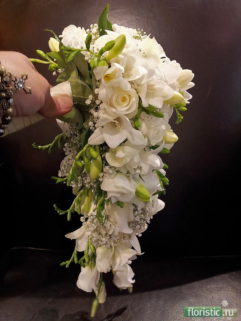 в интернете на одном шведском блоге очень букет один запомнился...давно причем....просто и оригинально, с четкой формой и белым цветом, с которым так сложно работать! Люблю такие ! главное техника исполнения очень импонирует, люблю проволоку за ее виртуальность!
