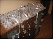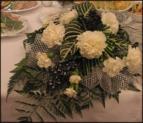 ![]() Решилась на эксперимент со строительной сеткой,благодаря форуму. Это каркас в форме полу-цилиндра на столик для росписи.Он же,легким движением руки,должен был быстро переехать на стол молодоженов,встав между двумя композициями.Бюджет каркаса и двух композиций-70 у.е. Вся свадьба была выдержана в черно-бело-серебряной гамме,даже платье невесты. Готова стойко выслушать любые мнения! ![]() |