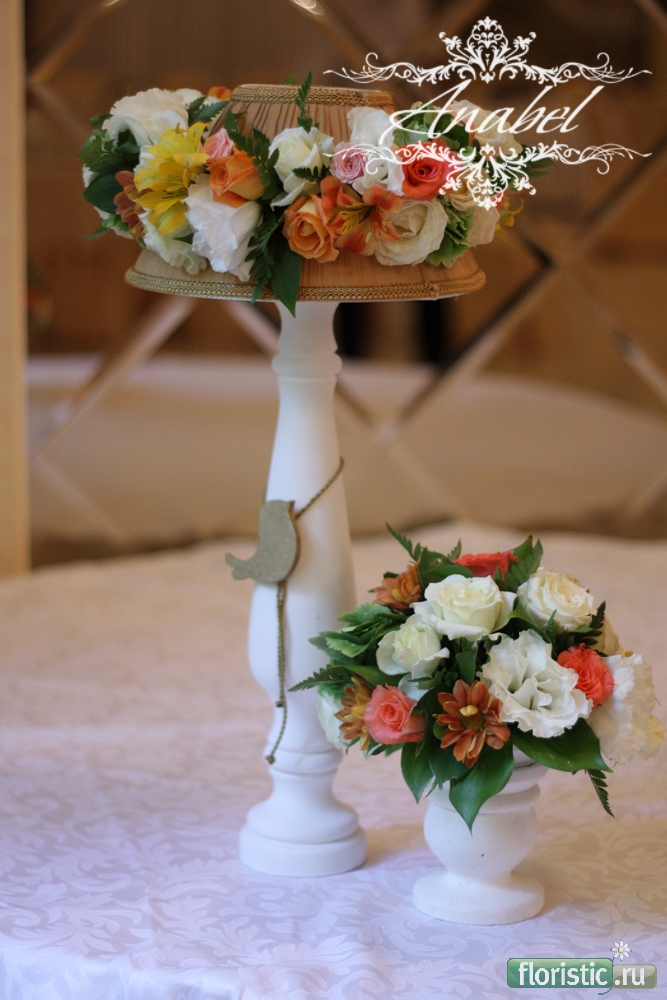 это вот пример -я его теперь молодоженам показываю,когда аргументирую недостатки низких, а следовательно и дешевых композиций. сначала сама же одобрила возможность композиции за три копейки, а потом выкручивалась с помощью дополнительных подставок