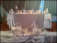 На мой взгляд слишком много разных элементов. Как будто поставили сразу всё, что было. Оформление гостевых столов ничем не связано с президиумом. Президиум больше читается как "клубника со сливками" )) Букет невесты тоже как будто из другой сказки.