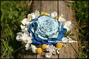 Подушечка для колец из гиацинтов. Обернута белым мехом и листиком гиацинта. Фото нечеткое очень жалею что не сфотала сама :(