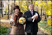 В пршлом году в феврале своим родителям устроила фееричный праздник! Сама написала первый в жизни "сценарий",пригласили ведущего с диджеем...К кафе Юбиляры подъезжали на чёрном авто с огромным золотым цветком,была арка(правда из шаров),был документ о перерегистрации,был столик с подушечкой для аля колец,было фото и видео на память! Гости в лёгком шоке...Далее в зал...на столе каскад,с потолка дендробиум и обязательно букетик ...Мама сама сшила "наряд",а я сделала шляпку(первый раз в жизни).