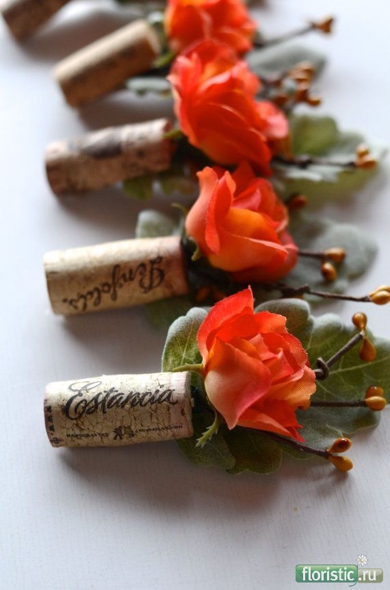 Недавно видела у нас возле районного ЗАГСа жениха с оригинальной бутоньеркой, которая была сделана на пробке. Сфотографировать не успела, так как была за рулем, а вот в Интернете нашла подобное оформление, хочу тоже попробовать сделать такую бутоньерку.