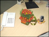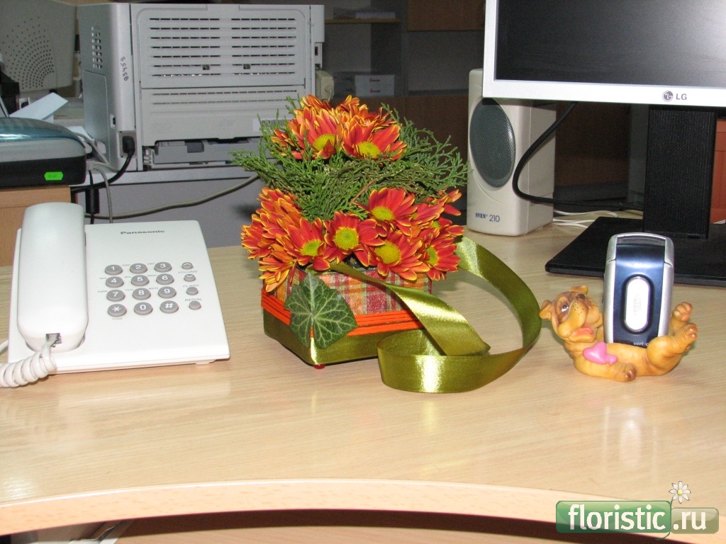 [QUOTE=Марина777;10395]Коллега попросила для подруги сделать что то недорогое, но оригинальное... в обеденный перерыв сделала коробочку, на следующий день собрала из принесенных цветов за 15 минут букетик (зелень предательски своровала во дворе офиса - наши жадные продавцы отдельно зелень не продают.. чего то боятся..=)).. собирала на рабочем столе - заходившие были очень удивлены "процессу сбора"..=))