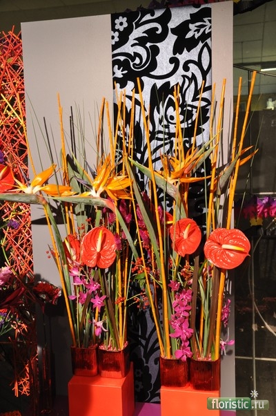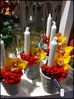 Очень понравилась хризантема в сухих листьях. На мой взгляд, при нынешнем положении дел в цветочных магазинах, рассчитывать можно только на то, что покупатели, которые вчера-сегодня-завтра пришли, увидели и удивились - придут за такой штучкой тогда, когда возникнет необходимость именно в таком подарке - очень стильном и недорогом. Спонтанность при покупке что российско-украинским, что моим покупателям свойственна меньше, поскольку покупки цветов совершаются относительно редко, заранее создается образ, что хотят купить, например, очень заранее представляют, как купят красную розу... как она среагирует... вспомнят еще аналогичные случаи, когда такое дарили и подумают, что она тоже вспомнит... В этих случаях изменить решение в последнюю минуту даже очень интересной находкой практически невозможно. Когда цветы покупаются часто, все приедается и "на ура!" идут именно необычные вещи.