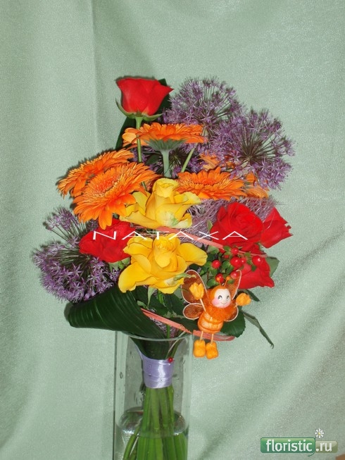 Вот еще букетик. Каркас тут тоже присутствует. Делала на последний звонок ребенку.