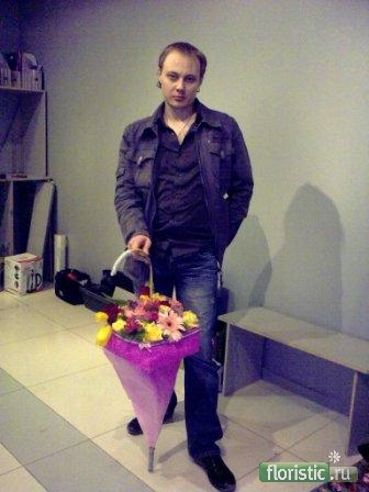 | букет на диске, букет на каркасе, композиция в зонтике, проволочный каркас |