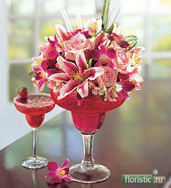 2 вопроса к профи... что за жидкость-гель в бокале? и как собирается такой букет?