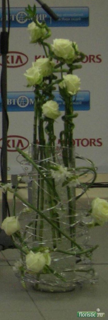Здравствуйте, подскажите пожалуйста какое крепление для цветов на этой вазе на фото- простой проволокой завязано...? Или еще какие нибудь способы есть?? Или есть основа- специальный каркас??