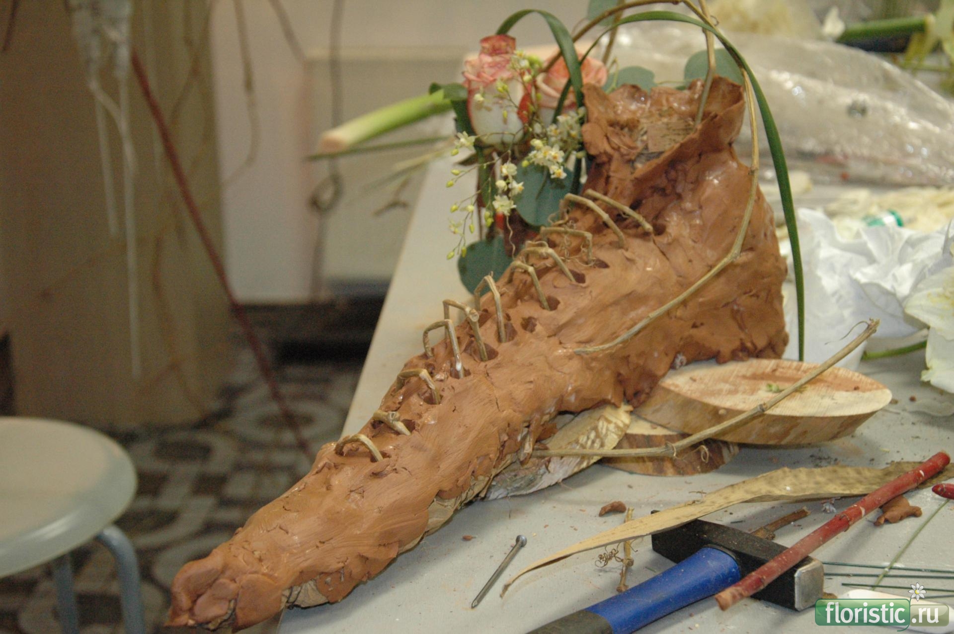 Поделилась идей с с аксофоном, "кроссовками", "волной"( это на основе на 2-3 тонких ножках-стержнях парящая композиция), просто мужской букет с корилисом , гипераструмом и т.п. не хочуть! хочуть саксофон! Вот который раз думаю, а на кой все это людям предлагать , когда срок слишком мал, что бы можно было какие-то конструкции сделать? вот поробуй потом на ботинок переориентировать... Но и ботинок сделать для меня не так просто, я никогда их не делала. Сделать так, что бы это было красиво, привлекательно. Просидела ночь в Контакте в поисках той работы Лерша - не нашла. Есть 3 страницы Современной флористики. Много очень красивых работ! Спаисбо , что рассказали про эти группы. Но ни виоланчели, ни ботинка я не нашла... :( Может у кого-нибудь есть эти фото с семинаров? Не сочтите за наглость, пожалуйста, но честное слово, не нашла. Я не волшебник, я только учусь! УРРРРААА!!! Нашла где учиться!!!! |