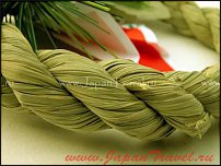 Нужно успеть купить грабли ("кумаде), чтобы под новый год было чем загр***** счастье. Для того чтобы задобрить Божество наступающего года японцы сооружают перед домом "кадомацу" - небольшие ворота из 3-х бамбуковых палочек, к которым привязывают сосновые ветки. Кто побогаче, строят кадомацу из карликовой сосны, бамбукового ростка и маленького деревца цветущей сливы или персика.Входные двери дома японцы украшают веточками бамбука и сосны.Сосна олицетворяет долголетие, бамбук - верность, а слива - жизнелюбие. Две плюшки "мочи" разного размера, сложенные одна на другую, и украшенные сверху японским мандарином (микан), являются основным украшением японского дома перед Новым Годом, это украшение, которое называется "кагамимочи". Еще необходимым декоративным элементом к японскому Новому Году является "шименава"- специальным, очень хитрым образом, скрученная рисовая солома с обычным набором японских праздничих бирюлек из красно-белой бумаги и золотых нитей. |