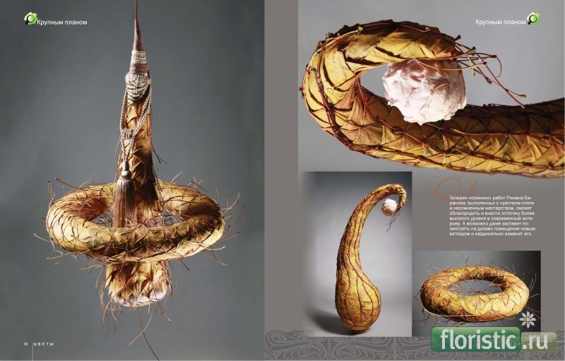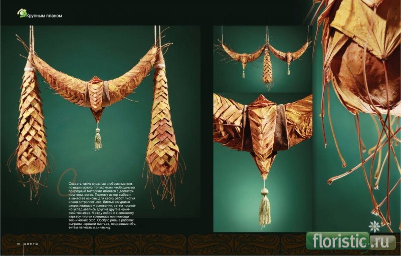 СОВЕРШЕНСТВО ЛИСТОПАДА (Флористика Баранов Роман, Фотограф Владимир Ададуров) Осень, богатая красками меняющей цвет листвы, всегда роскошна, великолепна и царственна. Она приносит неисчислимое количество разнообразных природных материалов, из которых творческий потенциал художника может «выплавить» удивительные композиции. Так, из кленовых листьев, трансформированных и переплетенных между собой, выполнены работы в стиле ар-нуво, которому свойственны сложные геометрические узоры. Для усиления эффекта в работах использованы кожаные элементы, художественная ковка, декоративная тесьма, бархат и перья степных птиц. Создать такие сложные и объемные композиции можно, только если необходимый природный материал имеется в достаточном количестве. Поэтому автор выбрал в качестве основы для своих работ листья клена остролистного. Листья аккуратно сворачивались у основания, затем послойно укладывались друг на друга в «римской технике». Между собой и к сложному каркасу листья крепились при помощи технических скоб. Особую роль в работах сыграли черешки листьев, придавшие объектам легкость и динамику Галерея «осенних» работ Романа Баранова, выполненных с чувством стиля и несомненным мастерством, сможет облагородить и внести эстетику более высокого уровня в современный интерьер. А возможно даже заставит посмотреть на дизайн помещения новым взглядом и кардинально изменит его. http://www.floristic.ru/forum/pictur...pictureid=1679 http://www.floristic.ru/forum/pictur...pictureid=1677 http://www.floristic.ru/forum/pictur...pictureid=1678 |