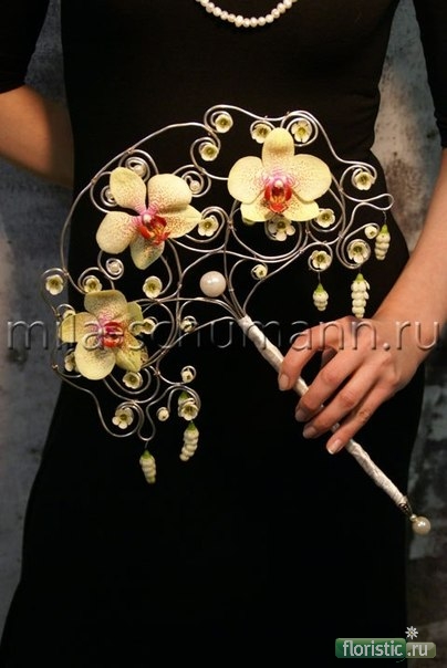 Я тоже люблю работать с проволокой. Любимой племяшке на день рождение подарила веер со свежесрезанной мелкоцветной розой