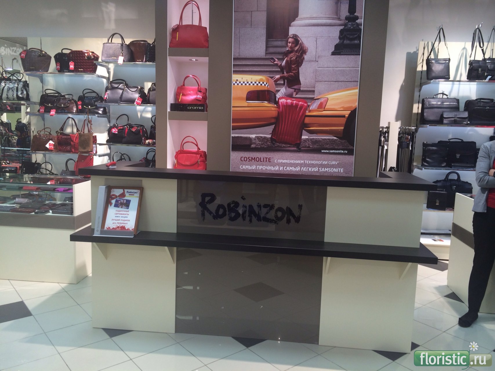 Заказчица открывает в большом гипермаркете отдел сумок.Заказала знакомой ,которая в свою очередь от заказа отказалась.Мало опыта.Предложила сделать мне или флористам моего салона. Масса согласований,звонков и сомнений со стороны заказчицы. Я исходила из предложенной фотографии отдела . Работу выполнила флорист Оксана Зачиняева.Я рада,что работая в тандеме с сотрудниками результат всегда оправдывает мои ожидания. |
