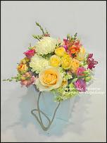 Я пакеты тоже, конечно, для букетов не использую - они для этого тонкие слишком. Слюда надёжнее. Или ваза одноразовая - для дорогих букетов... А в коробку можно приклеить обрезанную пластиковую бутылку - получится жесткая конструкция, которая будет держаться. |
