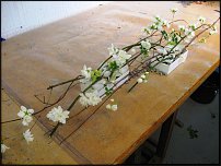 Просто ветки чубушника - только с цветами, никаких листьев - плавно перетекают из одной плошки в другую - вот самая яркая иллюстрация к фразе "богатство кричит, роскошь шепчет - к ней прислушаются итак..." |