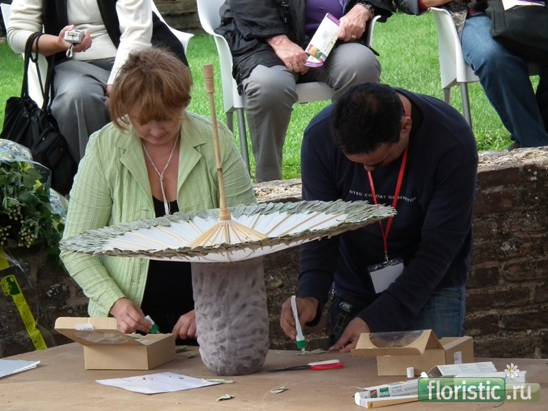 И вторая работа - знаменитый зонтик из лепестков роз,начинали клеить стахис на показе Лана с Димитрисом,потом Роберт начал клеить лепестки и зонтик попытался улететь,ветер сильный был. Пришлось мне оставить фотоаппарат и пойти держать зонтик...вот так и засветилась в этом деле...)))) Поскольку Роберт весь показ еще и развлекал публику,то с радостью бы рассказала бы вам об этом. Но ,к сожалению,основной язык там нидердандский,только что специально посмотрела - (справка - нидерландский язык происходит от языка береговых франков и является прямым потомком протогерманского языка индоевропейской языковой группы. Ближайшие родственники — древнеанглийский, фризский, нижненемецкий языки.) Голландским и фламандским его называют неправильно. Так что из всего потока шуток поняла только его рассказ,что его называют блюмен садистом - это из-за его любви к трансформации лепестков.