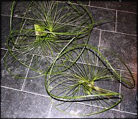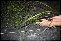 И вот они его ,как выразилась Юлианна - чешут кензаном,получаются такие зеленоватые очень гибкие пряди зеленых волокон,особо о сохранении их во влажном состоянии никто не заботился,брызгать их не брызгали,просто сразу плели. Подробности видны на фото,которые с удовольствием делали все.