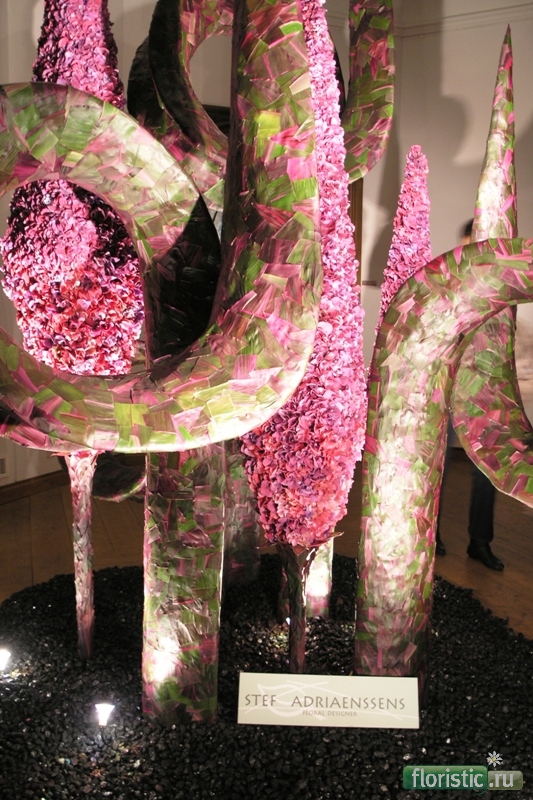 Stef Adriaenssens Штеф Адриенссенс Бельгия www.floristiek.be Самое малое, что можно сказать о Штефе Адрианссенсе, это то, что он очень занятой человек. Помимо цветочного магазина “Floristiek”, которым он управляет и который расположен в Льерре, недалеко от фламандского города Антверпен, Штеф также сотрудничает с издательством “Rekad”, успешно выступает на престижных флористических мероприятиях в Бельгии и за рубежом, а в октябре он планирует открытие своей собственной флористической школы: “Fluvium International Floral Academy Antwerp” (Международная Флористическая Академия «Флювиум» в Антверпене). Надо сказать, что Штеф Адрианссенс принадлежит к европейской флористической элите; это страстно увлекающийся человек, который превратил свое хобби в профессию, и который охотно делится своими знаниями с другими. И это тоже его увлечение, то, что движет им. «Самое прекрасное, что может произойти с вами в этой профессии, - сказал Штеф во время своего интервью, – это когда ты вместе со своими учениками вырабатываешь яркий концепт для выдающегося флористического события. И тогда вы можете видеть, как в командной работе реализуются ваши собственные идеи, как поиск приводит к нужному решению. Каждый раз, испытывая это чувство, я наверху блаженства, это – моя движущая сила». Штеф Адрианссенс вырос во флористическом окружении, но у его родителей были другие планы для своего сына, который хорошо учился. Они отправили его в университет изучать прикладные экономические науки. «Мои родители хорошо понимали, что у меня был огромный интерес к флористике, - рассказывает Штеф, - но они знали и то, как тяжела эта профессия. Видимо, они очень хотели уберечь меня, и тогда я отправился в университет. По прошествии нескольких лет я пришел к выводу, что продолжать учебу – значит оказаться не в своей тарелке. Я мог быть счастливым, только если бы смог реализоваться творчески, поэтому я прервал учебу. Однако, я очень доволен, что мои родители заставили меня пойти в университет, за тот период я накопил важный багаж знаний, которым позднее воспользовался». В 22 года Штеф открывает свой собственный цветочный магазин в городке Льерр, паралельно с этим обучался в школе Даниэля Оста в Беервельде. «Даниэль всегда был и остается для меня примером, но я никогда не хотел его копировать. Школа в Беервельде считалась элитной, но помимо Даниэля Оста я также узнал других преподавателей, которые передали мне свои знания, позволяющие применять при создании флористических композиций то, чем наделила меня природа. В школе мы создавали структуры высокой степени сложности. Нередко к концу рабочего дня нам удавалось завершить лишь две работы. Некоторые мои коллеги выступали с критикой по этому поводу, поднимая вопросы о рентабельности такой медленной работы. Но смысл был в другом. Выполняя эти работы, я открывал для себя определенные технические приемы, которые становились частью новых решений, позволяющих завершать задуманное гораздо быстрее». «Недавно я перестал выступать на конкурсах, но продолжаю с большим воодушевлением принимать участие в больших флористических мероприятиях. На таких мероприятиях, которые посещают знатоки, флорист получает карт-бланш на создание своих работ. Положительная оценка и аплодисменты – стимул номер один, чтобы участвовать в таких флористических праздников, как в Брюгге и Аль